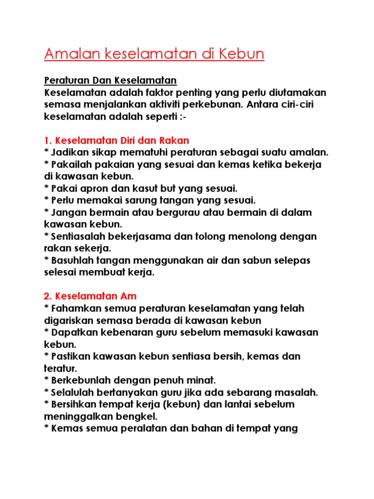 Amalan Keselamatan Di Kebun Pdf